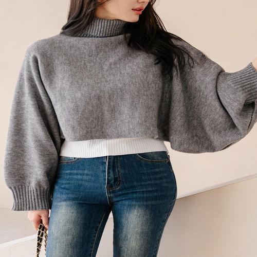 [르샵](본사직영)레이어드 하이넥 볼레로 니트 풀오버-L1C45KPO360