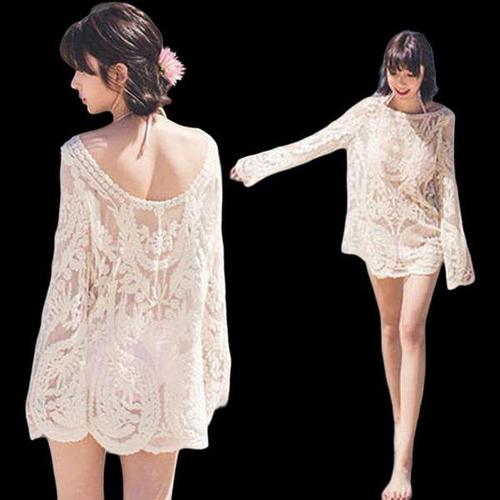 [옷자락]여자 숏 커버업 시스루 망사 비키니 니트
