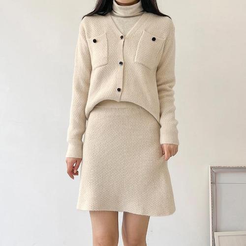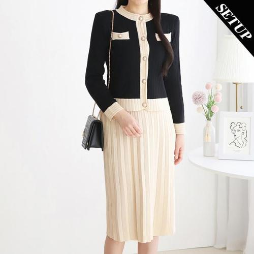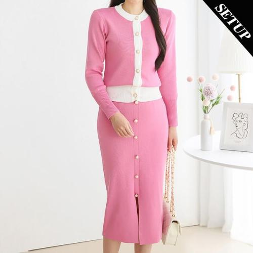 [모리스커밍홈][SET]배색포인트 니트 가디건 슬림핏 스커트 2종세트_M2308SE098C
