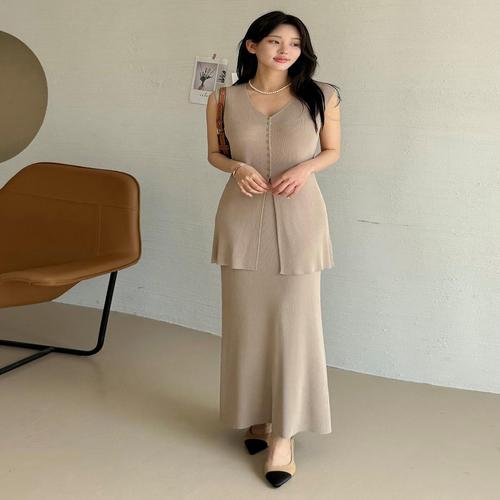 [모리스커밍홈][SET]골지 트임 롱니트 스커트 세트_M2505SE618B