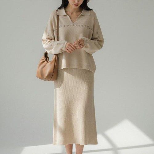 [아리엘스타일]겨울니트 롱스커트 데일리세트 노빈트니트투피스