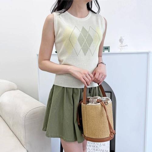 사이즈프리, 가볍고 통기성 좋으며, 핏팅된 단색 니트 스트랩이 달린 패션 소녀스러운 베스트