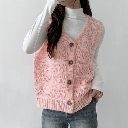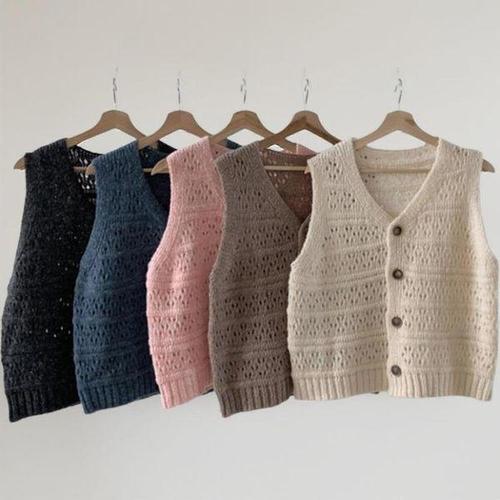 [신상오픈런]여성 브이넥 펀칭 패턴 가을용 박시 니트 조끼