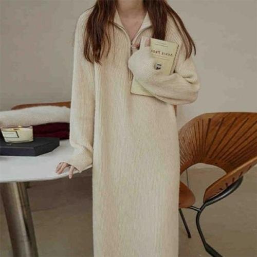 [엄지척]은창)하프넥 니트 데일리 지퍼 원피스 보온 치마 롱원_19957930_667501