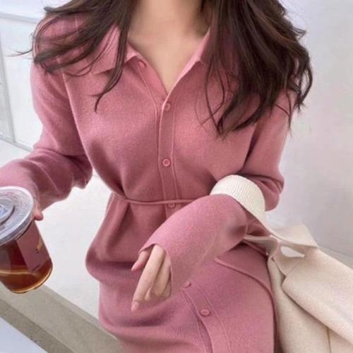 [엄지척]니트 긴팔 원피스 간절기 루즈핏 롱치마 데이트룩_19951943_667501