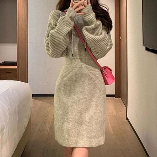[엄지척]후드 미니 니트 원피스 H라인 스커트 군살커버_19914648_667501