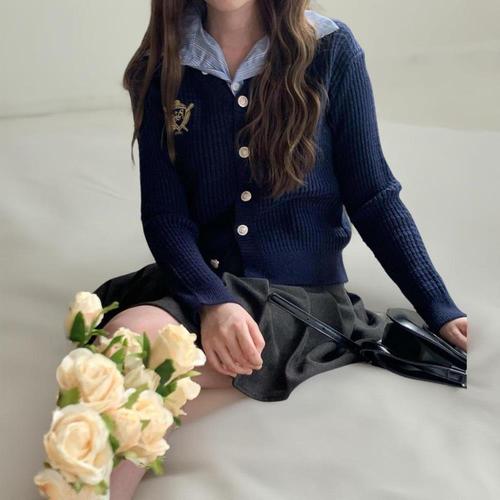 [신상오픈런]여성 캐주얼 자수 패치 셔츠 니트 가디건