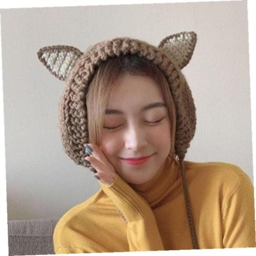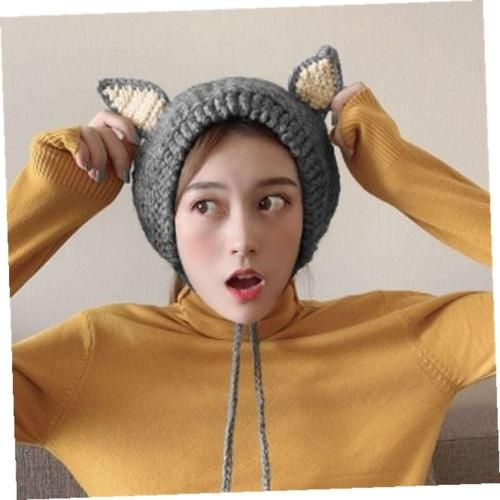 여성 따뜻한 앙고라 털 니트 귀달이 모자 귀도리 골무