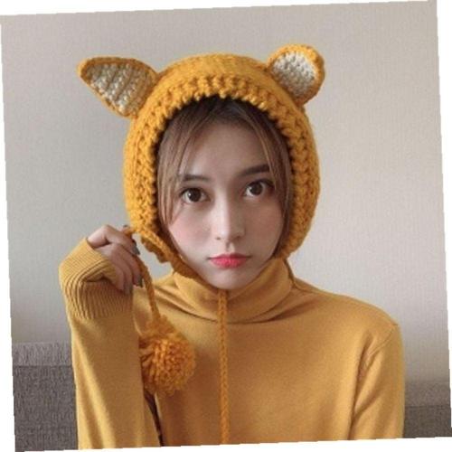 [에이치플러스몰]니트 귀도리 여자 겨울 비니 모자