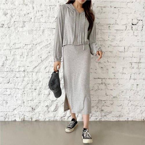 라루켄 트임 여성 원피스 세트 나시 롱니트 쉬 WFKPDO1