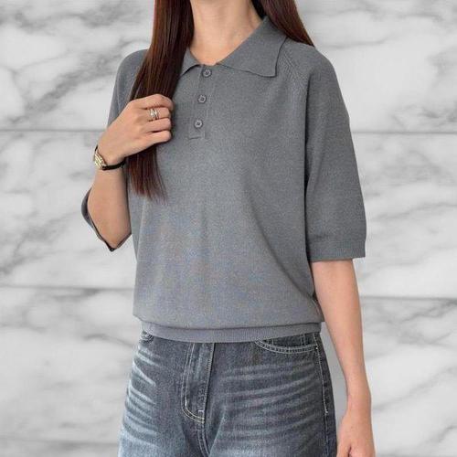 [옷자락]여성 가을 반팔티 카라넥 나그랑 일상복 무지 니트