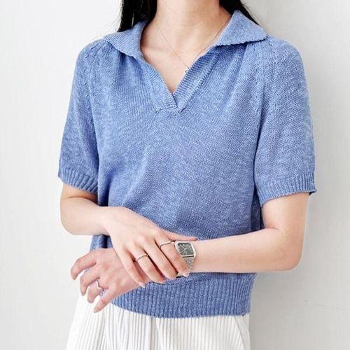 [에이치플러스몰]반팔티 여성 심플 3색 여자 여름 카라 니트 반팔니트