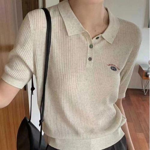 [에이치플러스몰]니트티 캐쥬얼 반팔카라티 휴가 여름 면 30대 반팔티