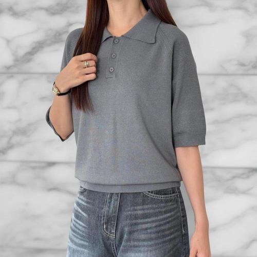 [옷자락] 여성 가을 반팔티 카라넥 나그랑 일상복 무지 니트