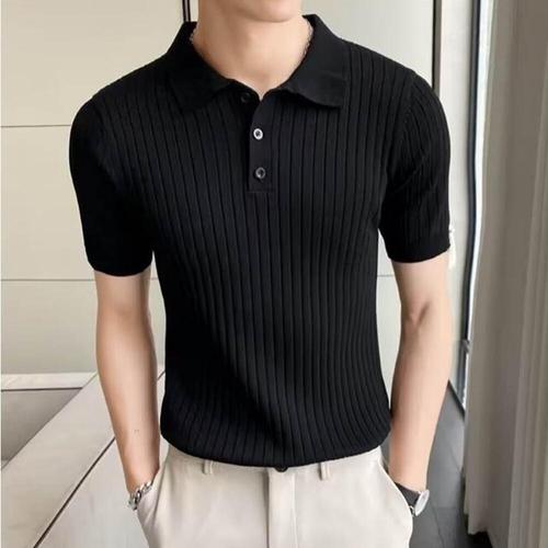 부드럽고 신축성좋은 티셔츠 남성용 카라 니트 반팔티
