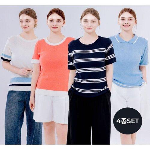 여성라운드넥울반팔니트4종세트