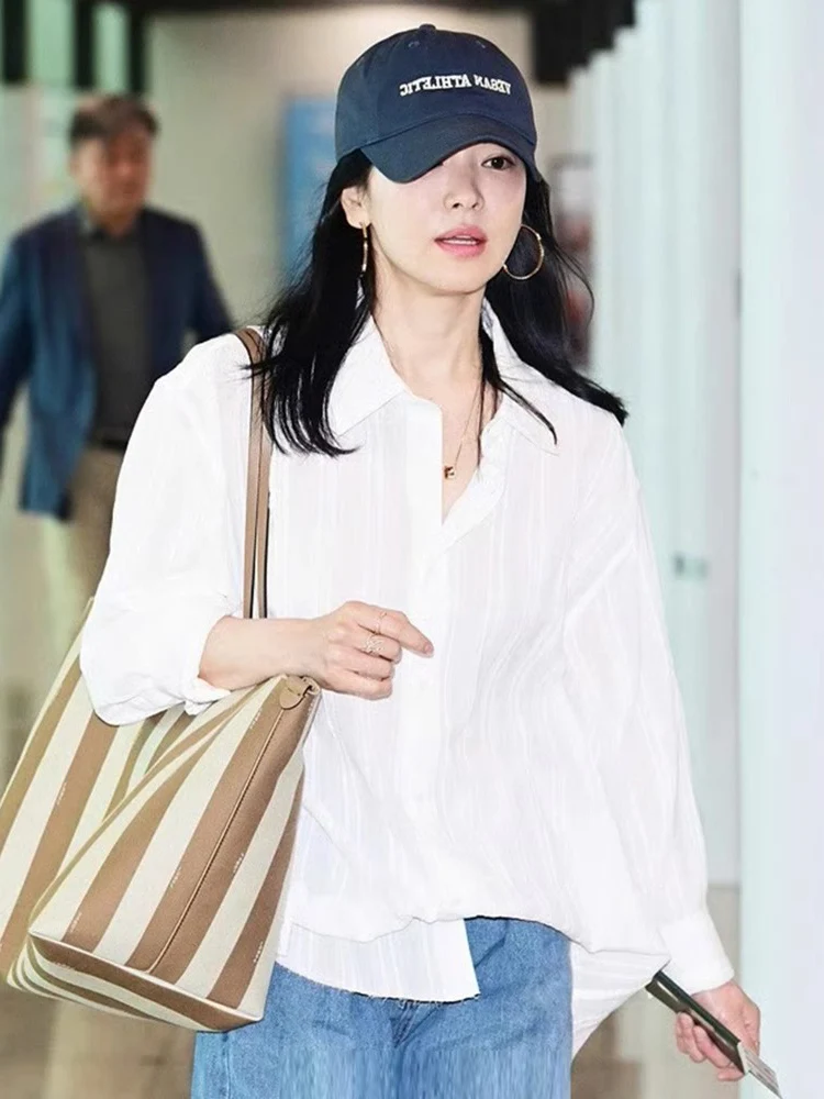 루즈핏 긴팔 면 린넨 자외선 차단 셔츠 여성 여름 얇은 스타일 레이지 패션 화이트 셔츠 폴로 칼라 중간 길이