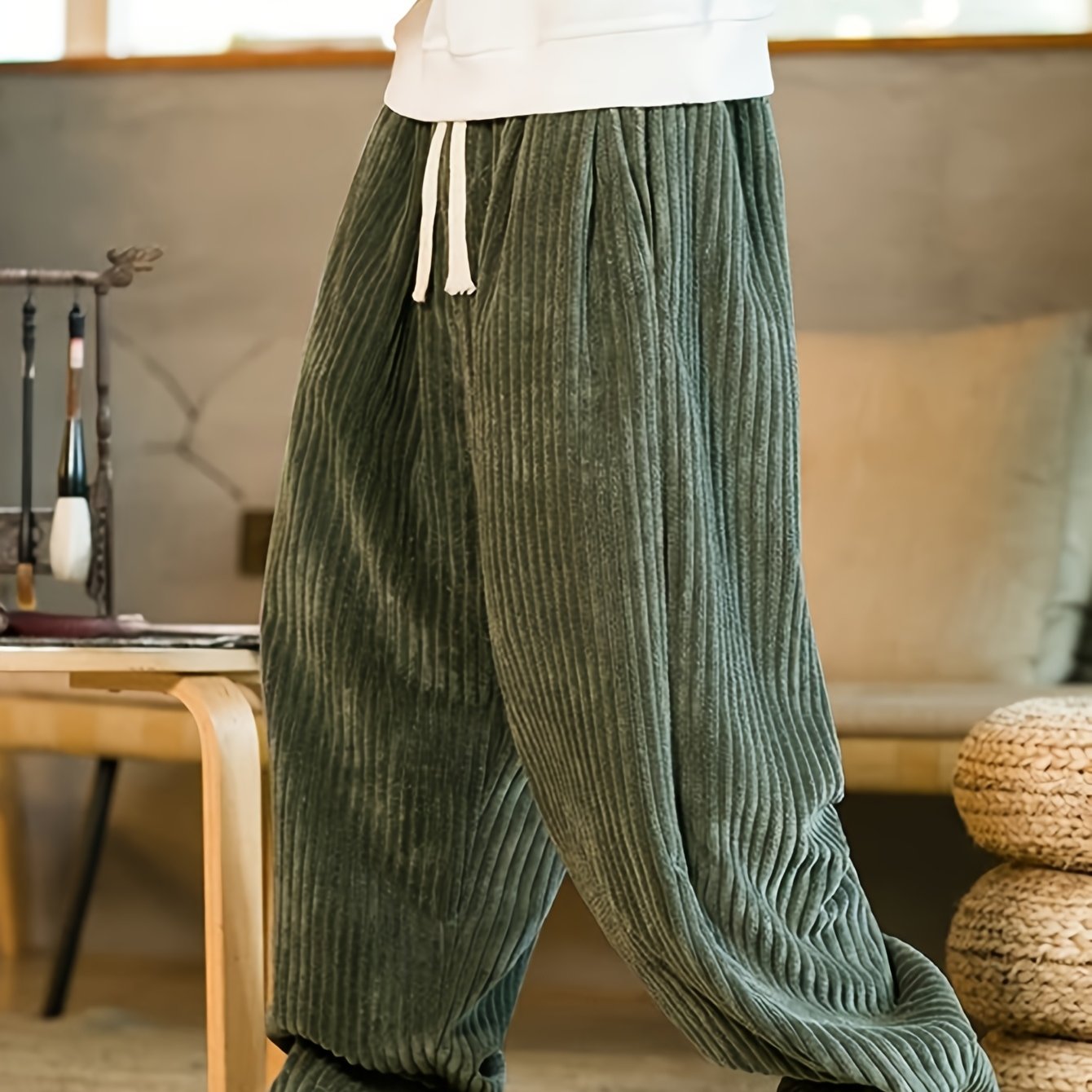 TEMU 남성용 빈티지 코듀로이 러그솔 팬츠 - 와이드 레그 루즈핏 겨울 바지, 코듀로이 하단, 논스트레치, 가을/겨울용, 캐주얼 & 캐주얼 웨어 (세탁기 사용 가능)