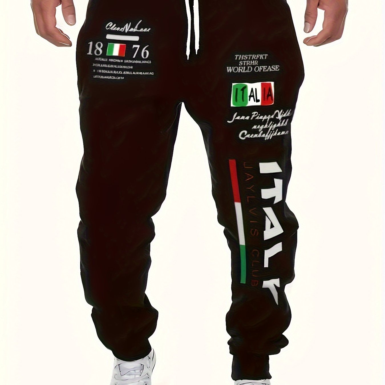 TEMU 이탈리아 국기 프린트 & 이탈리아 슬로건이 있는 남성용 조거 팬츠 - 사계절 캐주얼 운동복, 드로스트링 허리, 기계 세탁 가능, 레귤러 핏, 야외 활동, 체육관 및 스트릿웨어