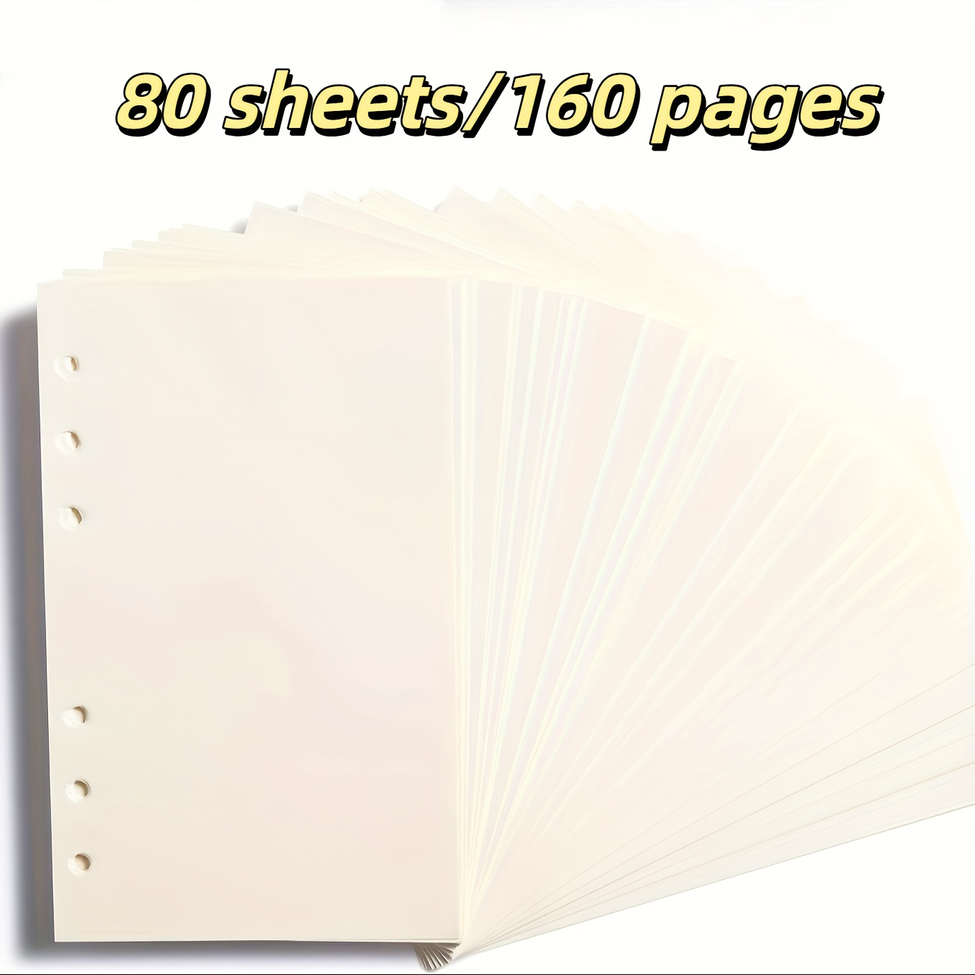 TEMU A6 바인더 리필용지, 160페이지 80장, 6홀 디자인, 100g/m² 방수 두꺼운 종이, 매끄러운 필기 표면. 다이어리, 플래너, 노트북에 적합. 6링 바인더 호환 - 학교 개학, 사무실 사용, 선물 및 휴일, 다이어리 리필, 노트북 용지, 문구, 고품질 시트, 리필 시트, 선물 쇼핑에 이상적, 종이 바인더