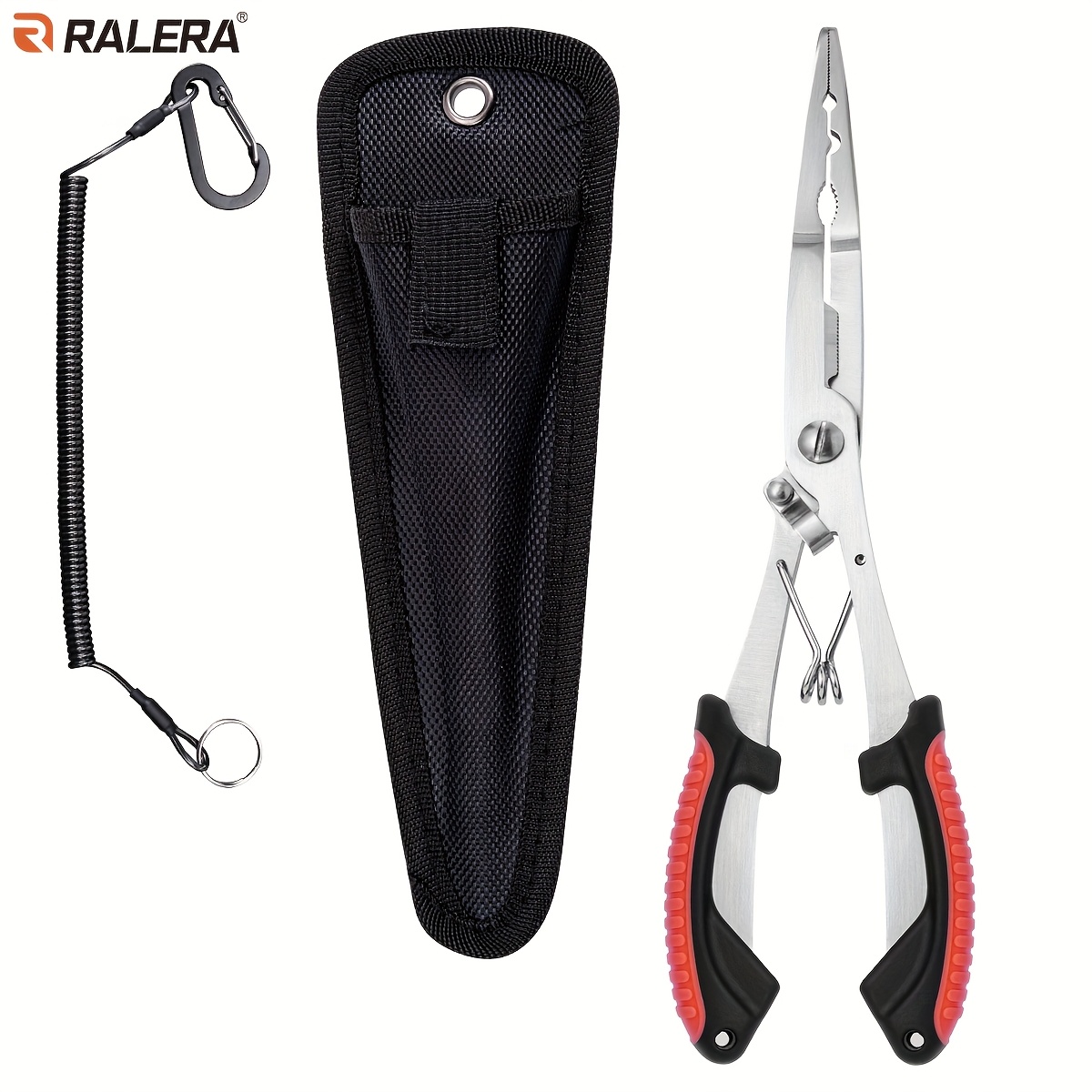 TEMU RALERA 스테인리스 스틸 대형 루어 플라이어 | 녹 방지 고출력 낚싯줄 커터, 휴대용 끈 및 보관 가방 포함, 루어 낚시 필수 도구, 배터리 없음