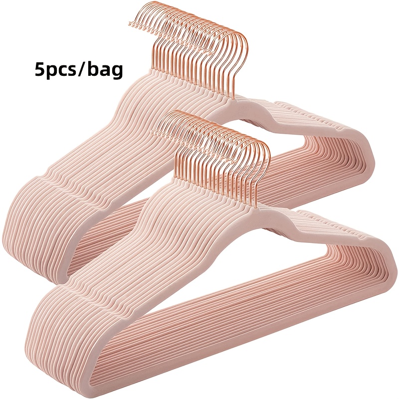 TEMU 5개입 고품질 스테인리스 스틸 옷걸이 | 미끄럼 방지, 튼튼한 디자인, 트렌디한 로즈 골드 후크, 플록 핑크 마감, 공간 절약형 디자인