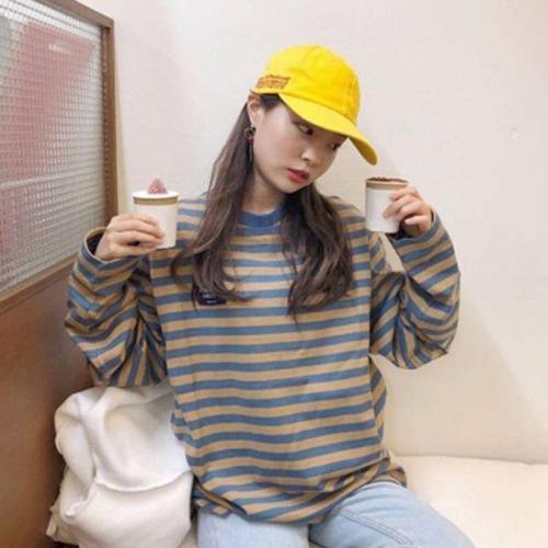 [에이치플러스몰]스트라이프 여성 롱슬리브 티셔츠 루즈핏 여자 긴팔티 긴팔티셔츠