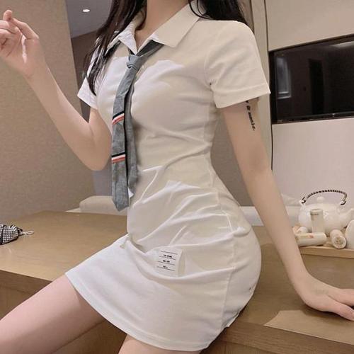 [하젤]단가라타이 카라 미니 면원피스_S3242