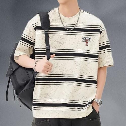 [디자이너몰]여름 신상 스트라이프 라운드 남성 반팔 티셔츠