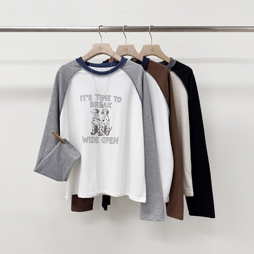 미즈큐즈 / 달마시안 레터링 래글런 나그랑 루즈핏 쭉티 긴팔 티