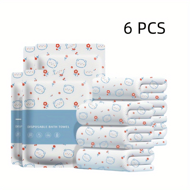 TEMU 6-팩 일회용 만화 인쇄 목욕 타월, 개별 포장, 두께가 두껍고, 흡수력이 강하고, 고품질 무세척 여행 타월, 출장, 야외 캠핑, 멸균 해변 타월, 무향, 배터리 불필요