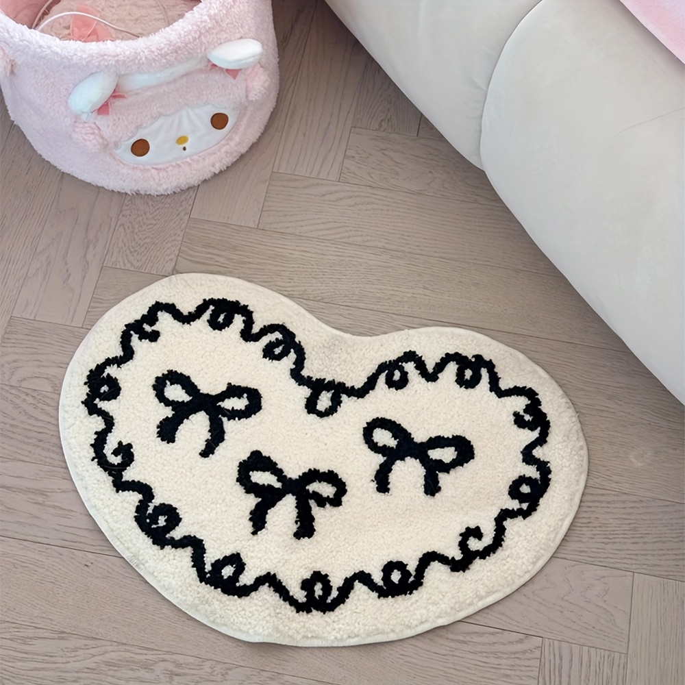 TEMU 1pc 만화 하트 모양의 불규칙한 영역 매트 - 10mm 부드러운 소프트 폴리에스터 및 고무 혼합물, 기계 세척 가능, 4가지 색상 (검정/흰색/파랑/빨강) 거실, 침실, 욕실, 입구 - 휴일 장식, 크리스마스, 할로윈, 추수감사절, 졸업, 유니테인, 입구 장식 | 재미있는 홈 데코 | 기계 세척 가능 매트, 거실용 러그