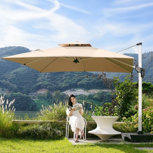 올지 누아브 대형 파라솔 3m 받침대 세트 led 사각 폴딩 접이식 각도조절 회전 야외 카페 옥상 정원 테라스