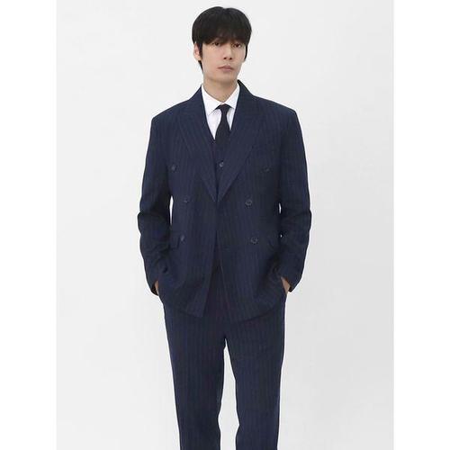 [빌리버스]빌리버스 남성 더블자켓 수트 3피스 셋업 스트라이프 하객룩 정장세트 BAX185
