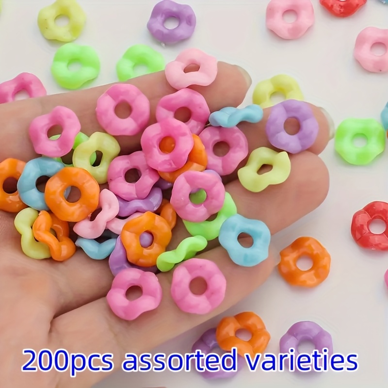 TEMU 200개 혼합 컬러 라운드 스페이서 비즈, 하트와 웨이브 모양, 대구멍 플라스틱 비즈 - DIY 주얼리 만들기, 팔찌, 키체인, 목걸이, 헤어밴드 공예용 - 주얼리 제작자 및 공예가를 위한 완벽한 선물, 창의적인 개인을 위한 비즈 어소트먼트