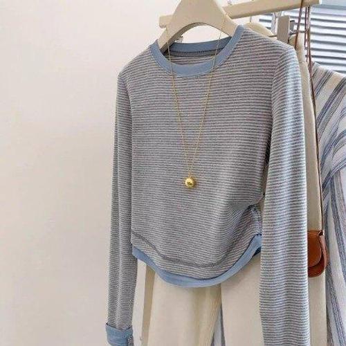 [아리엘스타일]스트라이프 페이크레이어드 노비엘레이어드티