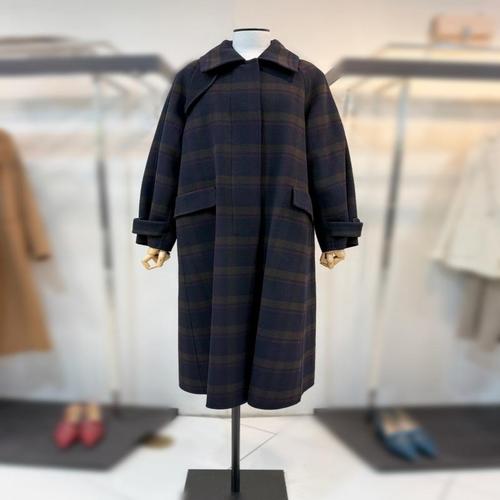 [더아이잗컬렉션]울 캐시미어 체크 하프 코트 CRBA0CTK21 -DG