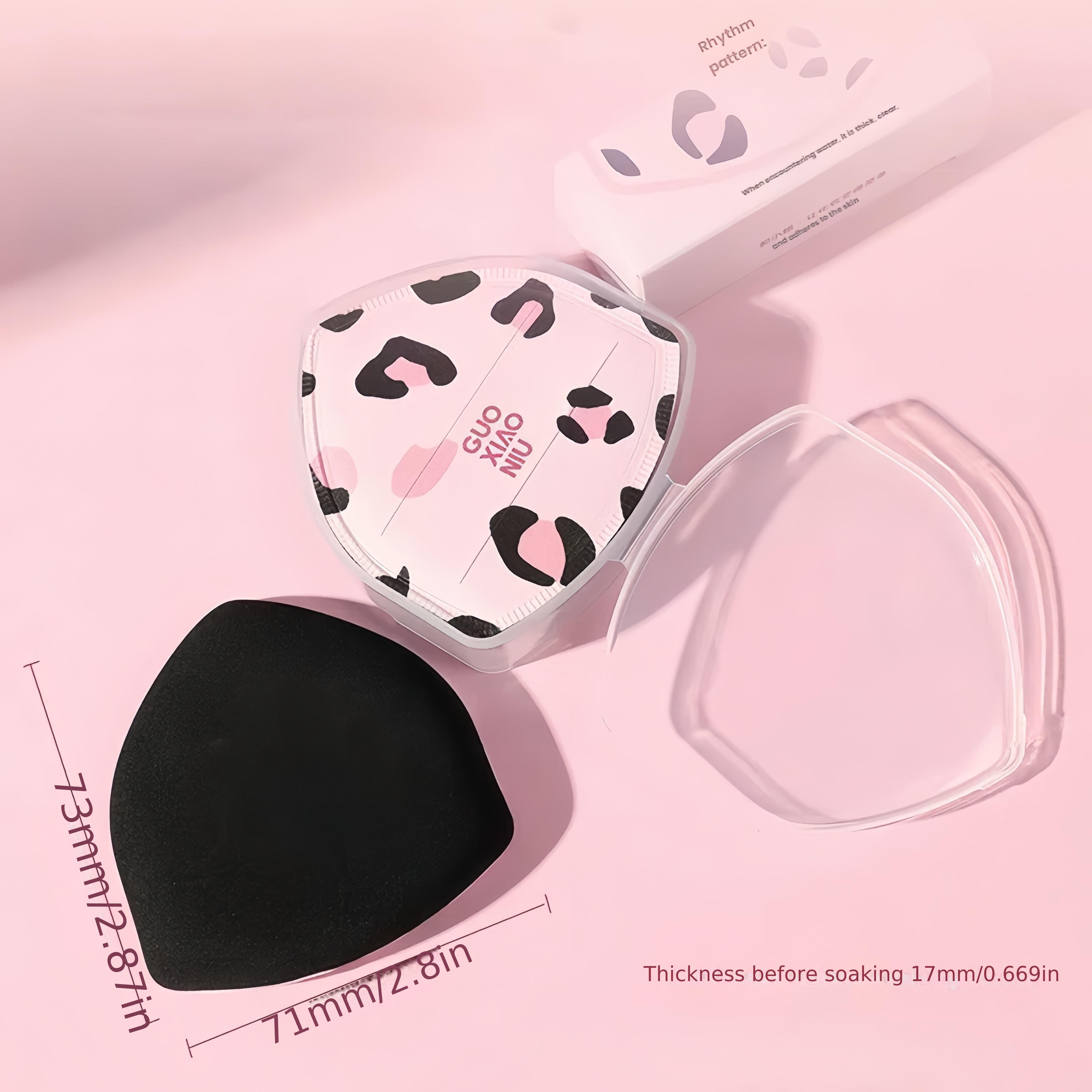 TEMU 구오샤오니우 프린트 메이크업 스펀지 1개, 라운드 & 포인트 디자인, 초고급 피부 친화적, 풀 커버리지, 건식 & 습식 사용, 리퀴드 파운데이션 & 세팅용, 보관 케이스 포함, 우아한 패키지, 여행용, 선물 추천
