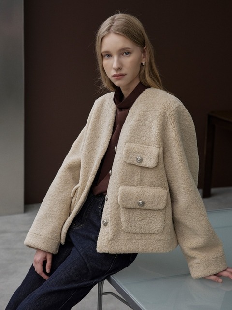 [더아이잗] (더아이잗) 페이크 퍼 포켓 브이넥 무스탕 재킷 IRVP3JK511