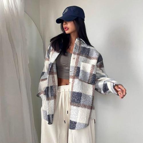 [유야]도톰 덤블 체크 셔츠 남방 자켓 아우터 -NB0079H- 빅사이즈 루즈핏 여성 가을 겨울