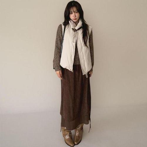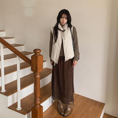 [옷자락]여성용 심플 포근 덤블 카라 패딩 베스트