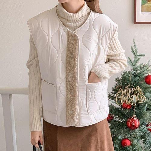 [다잇템]여자 주머니 누빔 덤블 단추 FW 양털 패딩조끼