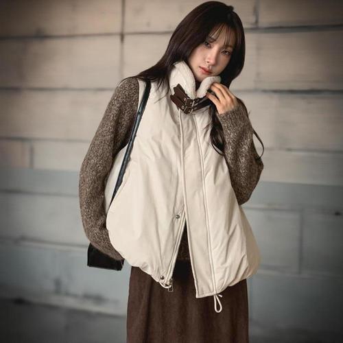 [신상오픈런]여성 포근한 덤블 카라넥 버클 패딩 조끼