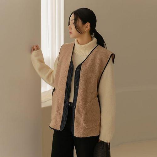 [셀러허브_여성트랜드패션]여자 주머니 양털 덤블 단추 포근한 베스트