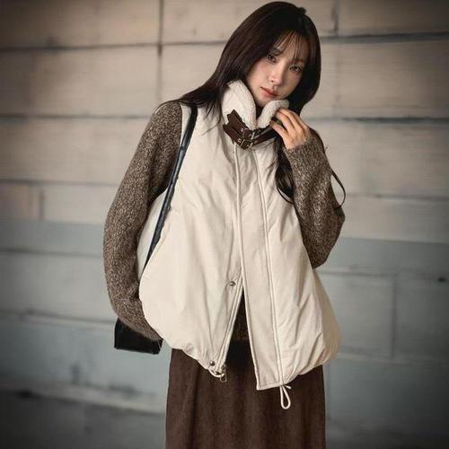 [다잇템][다잇템] 여성용 양털 덤블 버클넥 패딩 조끼_23943126_588872