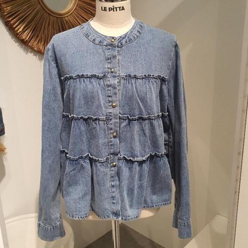 [르피타]르피타 HC06 셔링 캉캉 버튼 데님 블라우스(라이트 블루) L261UBL281 (45729787)