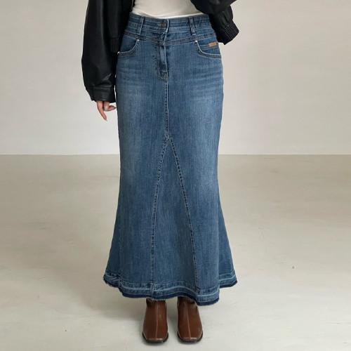 [릴룸]밴딩 머메이드 골반 볼륨 데님 롱스커트