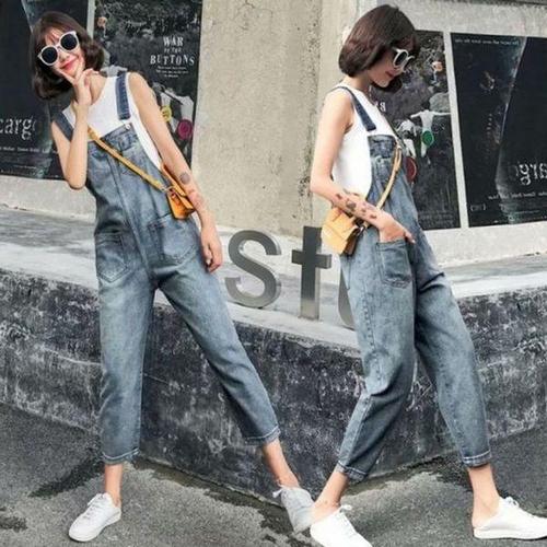 여성용 데님 멜빵바지 빅사이즈 와이드 점프슈트 청바지 Women's jeans 뉴타임즈