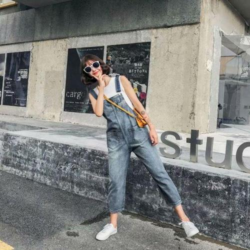 캐주얼 여성 멜빵 바지 봄가을 루즈핏 트렌드 카고풍 와이드 데님 팬츠 패션 빈티지 여자 점프슈트 LJX