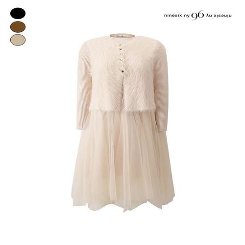[나인식스뉴욕]데이트룩 퍼 베스트 세트 쉬폰 니트 원피스 (NPCST002M0)